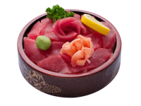 1 soupe, 1 salade, 1 bol de riz vinaigré avec des saumons (cubes) et d'avocat